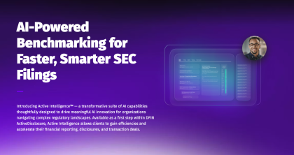 As a first step, select clients currently using ActiveDisclosure will gain exclusive access to AI-enhanced capabilities for streamlining the research, comparison, and analysis of draft SEC filings against their own prior filings and those of selected peers. This capability will help to reduce risk, validate content, and expediate the preparation of quarterly and annual reports, proxy statements, and IPO filings.